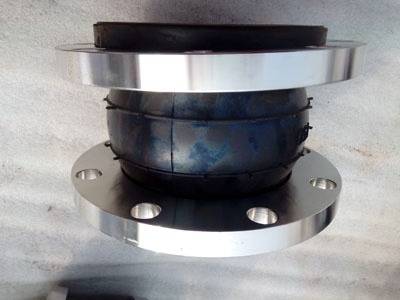 耐酸堿可曲撓橡膠接頭的球體是由內膠層、增強層有多層刮膠錦綸簾子布、外膠層復合的橡膠管組成。整體結構由內外層膠、簾布層和鋼絲圈組成管狀橡膠件,經硫化成型后再與金屬法蘭或平行接頭松套組合而成。